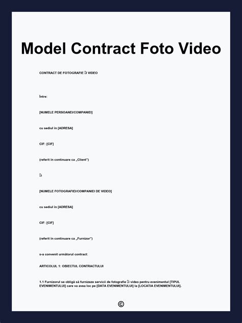 Model Contract Foto Video: Ghid Complet pentru Colaborarea Foto-Video Profesionistă